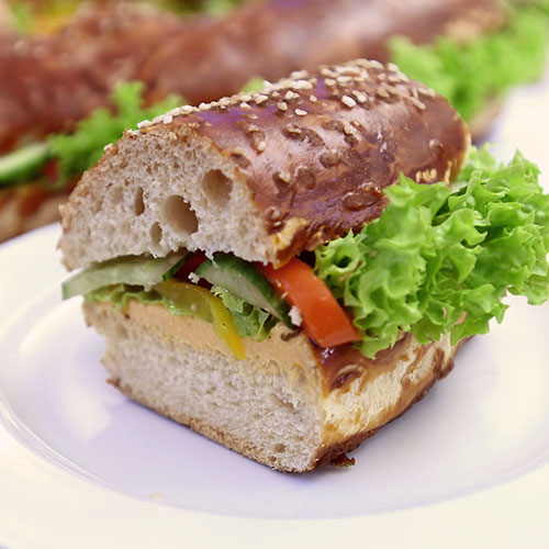 Schon beim Anblick unserer individuell gestaltbaren XXL Brezeln bekommen deine Gäste gute Lau(n)e! Ob Veggy, deftig oder als süße Variante – auch kleine Feiern verdienen große Brezeln!